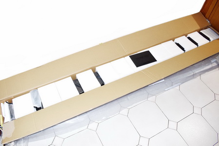 The S ALR Obsidian Floor Rising Screen by VIVIDSTORM arrived inside a box measuring almost 2.5 meters in length and weighing 28Kg.
