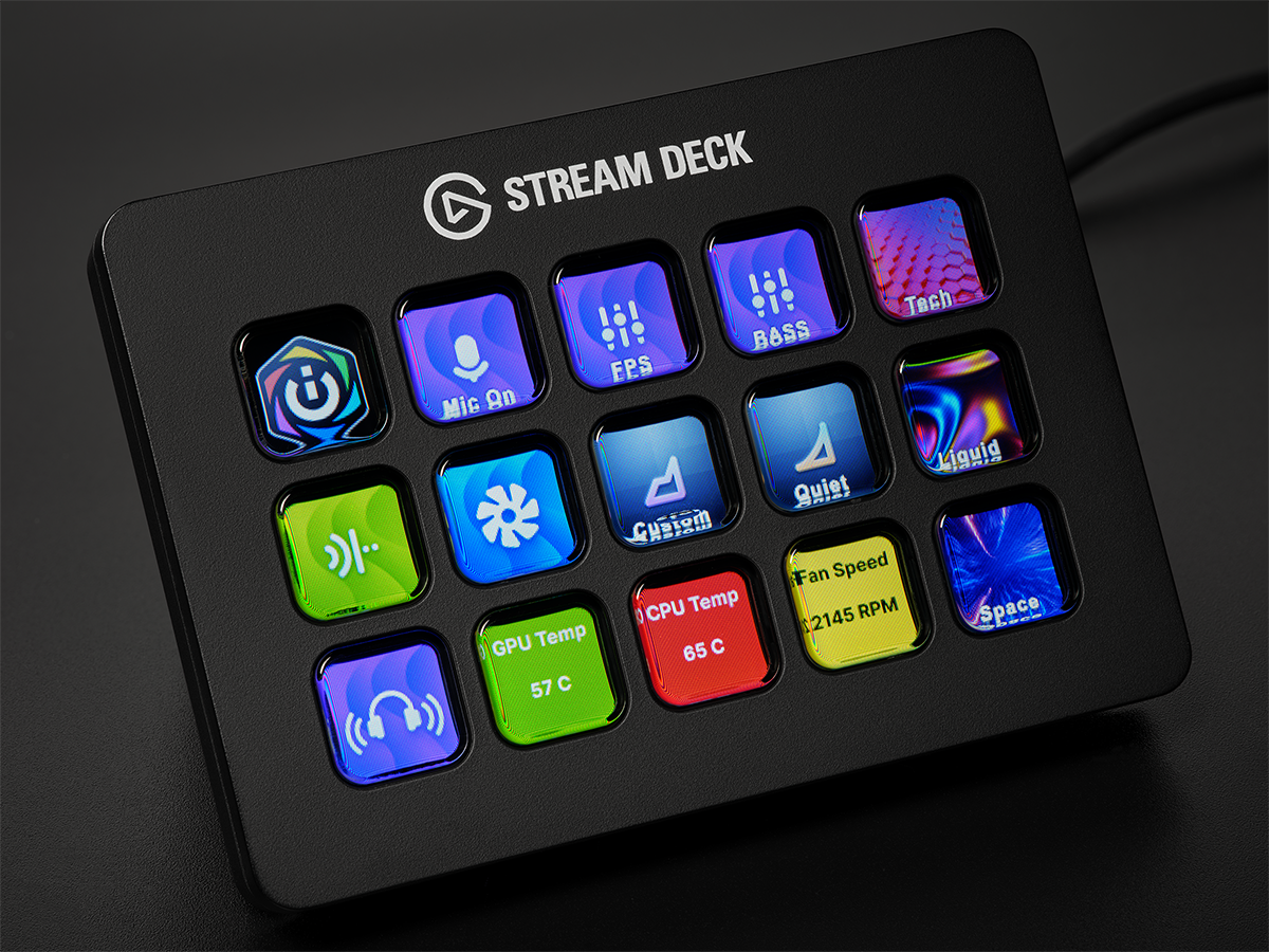 For Elgato Stream Deck fans, the latest CORSAIR iCUE plugin lets you seamlessly control iCUE settings from your Stream Deck, Stream Deck Mobile app, or Stream Deck functions on CORSAIR keyboard macro keys. With this updated plugin, you can now change lighting profiles on the fly, view your PC temps and stats, or adjust CORSAIR fan speeds and cooling presets. Mute your microphone, adjust EQ settings and surround sound, and control NVIDIA Broadcast with just a keypress. Stream Deck keys can display a wide range of icons to match your setup, or have more fun by personalizing each key with your own custom images.